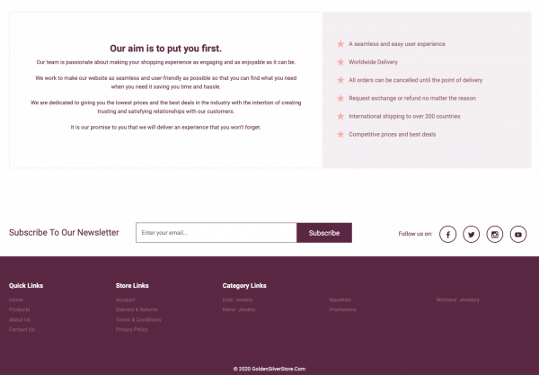 A fantastic Gold and Silver Jewellery and Accessories Store featuring over 300 products! With multiple product categories including Accessories, Kids, Mens, Womens and much more selling high quality products and accessories through your dropshipping store, with all the products hand chosen to complement each other without them being overly available in the local market to ensure you keep your edge of uniqueness , with worldwide delivery.